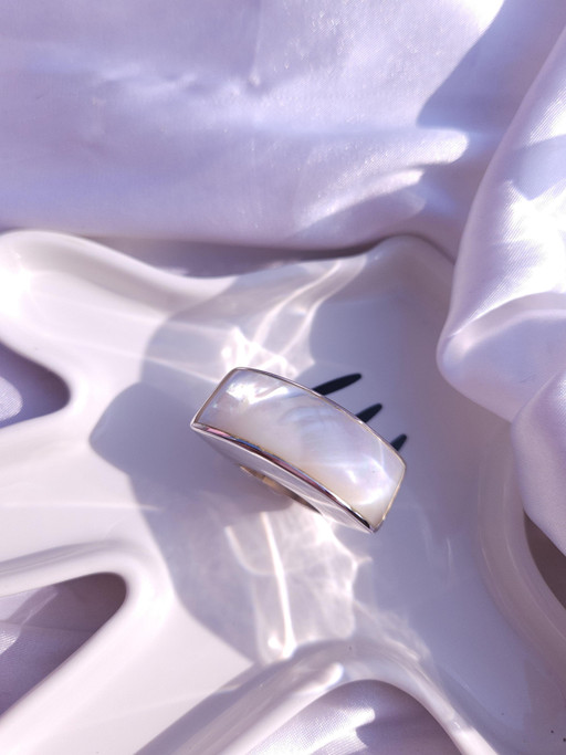 Repairing ✨ Moonlight Arch Mother Pearl Silver Ring ✨ -This ring is designed for larger sizes- – Mother Pearl size 39mm x 12mm/ Weight: 14.5g (varies depending on ring size) – *Ring