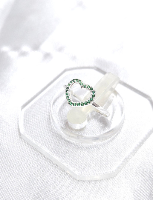 Repairing ✨ GREEN QUARTZ HEART SILVER RING ✨ *All rings can be ordered up to size 21 😌 **Please inquire separately for larger sizes. [Please order based on the new KS hand size! prize
